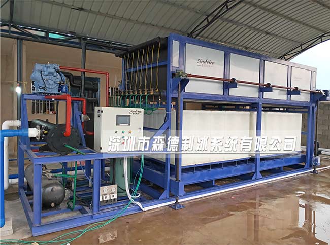 2、大型直冷塊冰機,產量一般在日產10-30噸,采用分體結構,制冰蒸發器和機組分開,方便運輸和安裝。